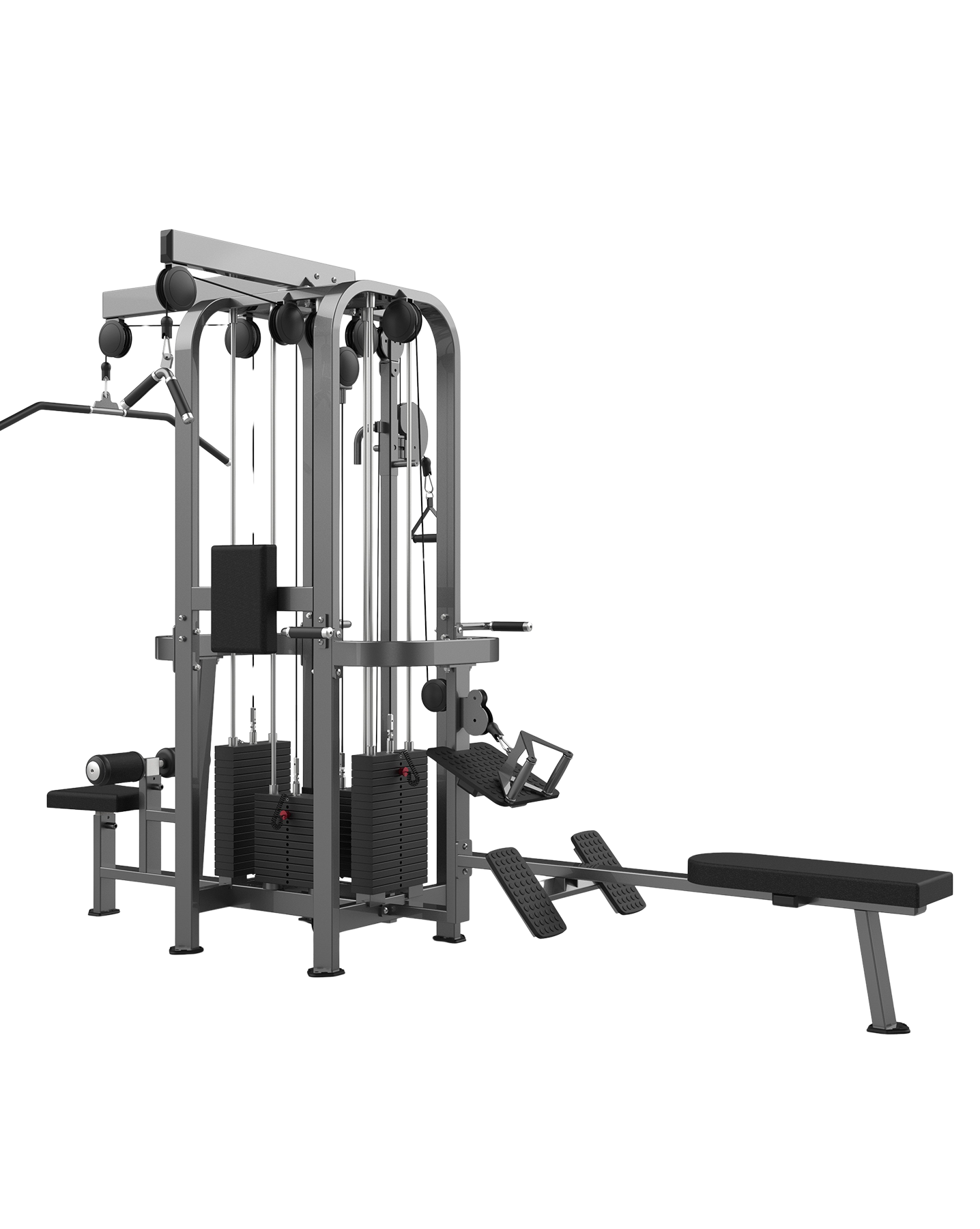 FM-2005 Multi Jungle 5-Stack är en kommersiell multistation från Real Leaders FM-serie, utformad för att erbjuda omfattande och mångsidig kabelträning med upp till fem samtidiga användare. Maskinen kombinerar robust konstruktion, smart ytanvändning och användarvänlig funktionalitet – idealisk för kommersiella gym, träningsstudios och funktionella zoner.