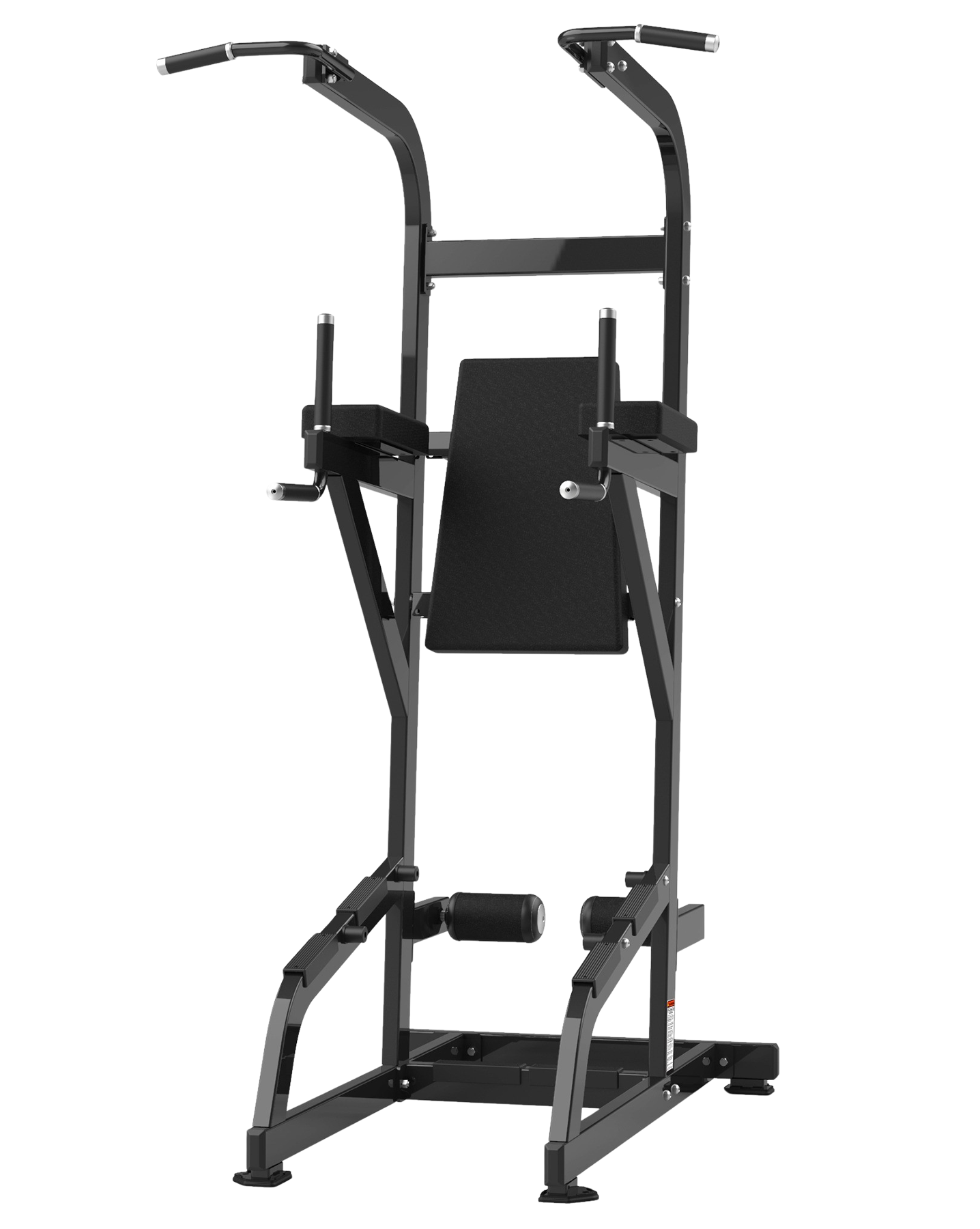 Maskinen erbjuder både chins och dippar i en station med stadig grund och flera greppspositioner för variation. Konstruktionen bygger på 80 × 40 × 3 mm stålprofil vilket gör den robust för kommersiell användning.