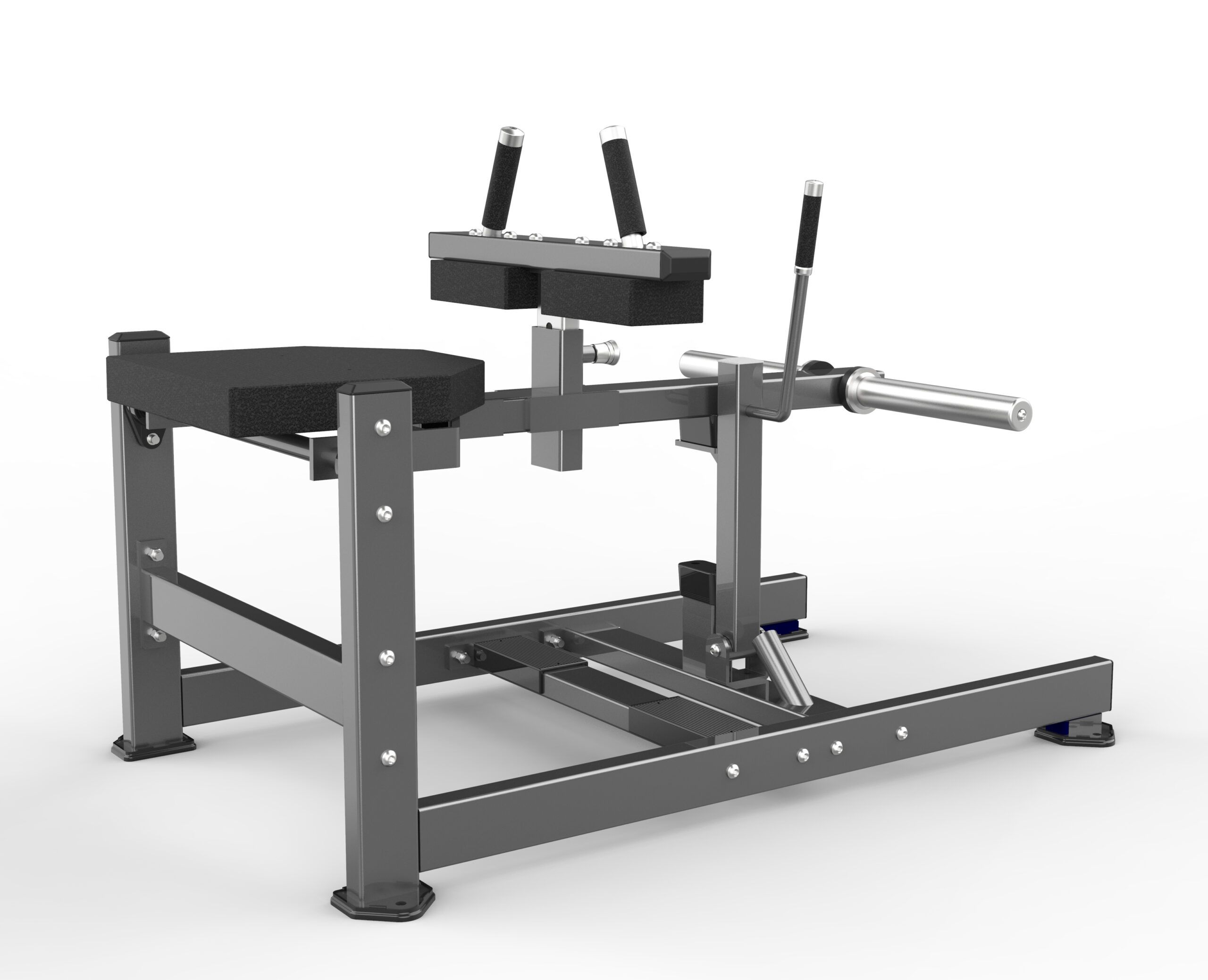 Maskinen är utrustad med en justerbar lårkudde som håller användaren stadigt i rätt position, vilket möjliggör full rörelseomfång utan att belasta andra muskelgrupper. Denna funktion säkerställer att träningen förblir fokuserad på soleus och gastrocnemius, de två huvudsakliga vadmusklerna.